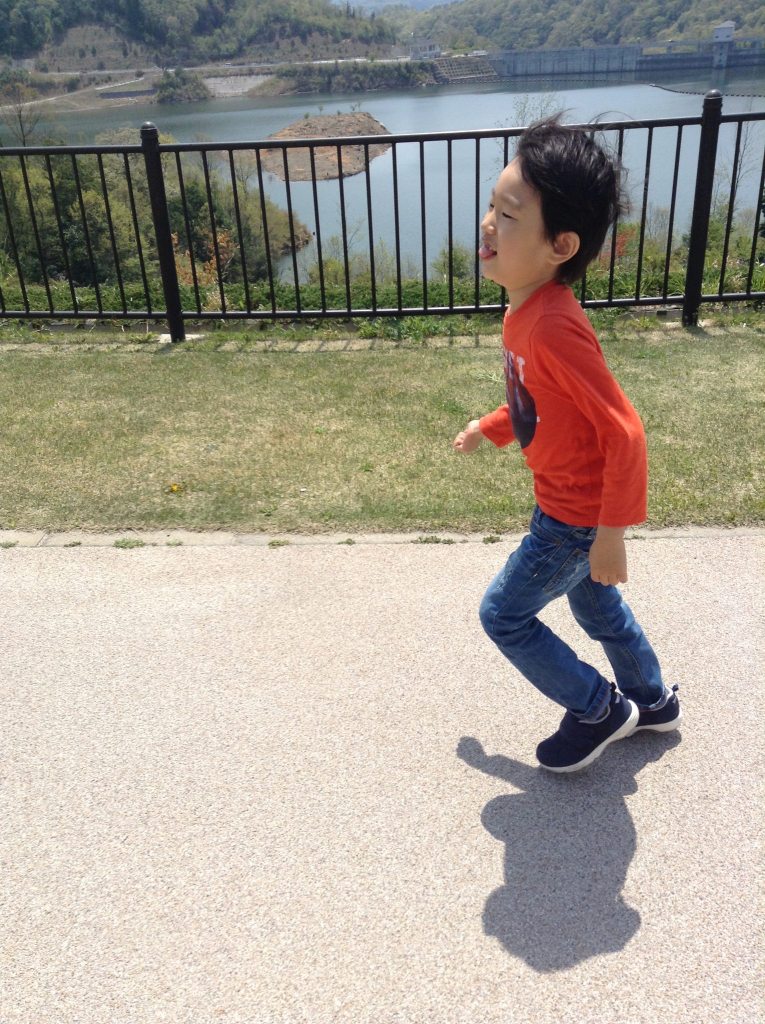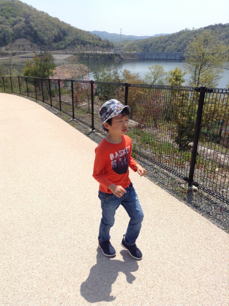 遊具よりも、湖畔周辺の舗装路を散歩(駆け足)しました。